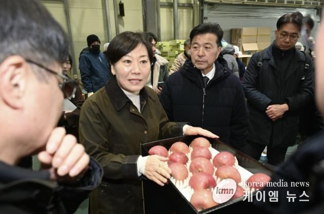 (케이엠뉴스) 예산군은 송미령 농림축산식품부 장관이 지난 7일 예산농산물유통센터를 방문해 설 성수품인 사과의 저장 및 공급 상황을 점검했다고 밝혔다.