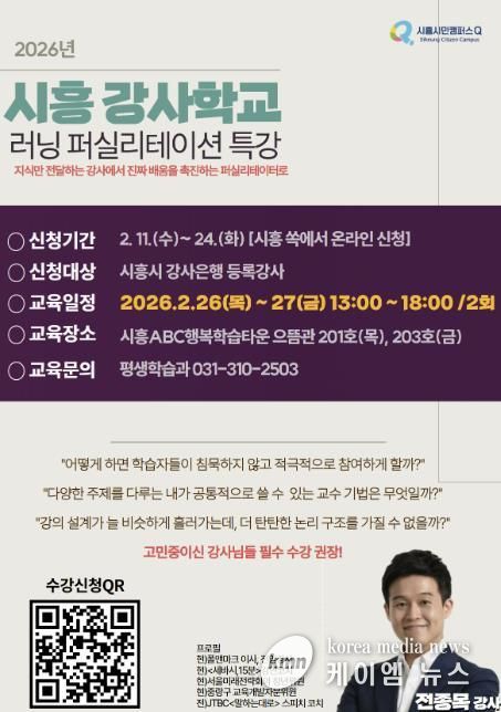 (케이엠뉴스) 시흥시는 오는 2월 26일부터 27일까지 이틀간 시흥ABC행복학습타운에서 강사들의 교수법 혁신을 위한 ‘2026년 시흥 강사학교: 러닝 퍼실리테이션 특강’을 운영한다.