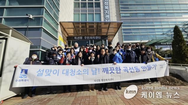 (케이엠뉴스) 권선구 곡선동은 지난 9일 이번 설연휴를 앞두고 동 단체 회원들과 동 직원들이 합동하여 설맞이 대청소를 진행했다.