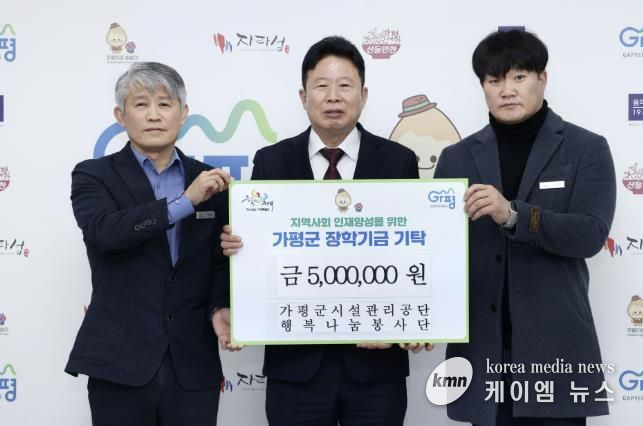 (케이엠뉴스) 가평군 교육 발전을 향한 군민들의 관심이 이어지고 있는 가운데, 가평군시설관리공단이 9일 군청을 방문해 장학기금 500만원을 전달했다.