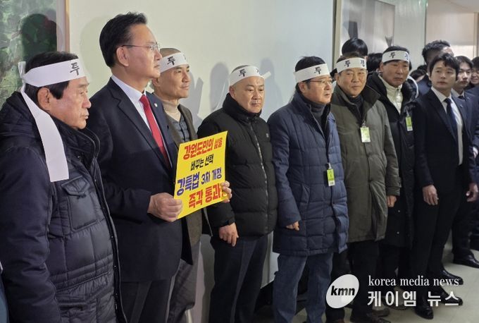 김 지사는 “행정통합 시도인 5극은 빠른 속도로 국회 심사대에 오른 반면, 정부 부처 협의까지 마친 강원특별법 3차 개정안은 17개월 째 단 한 차례도 법안심사 논의가 이뤄지지 않았다”며 강한 유감을 표했다. 이어 “강원・전북・제주・세종, 이른바 3특과 행정수도 특별법안 역시 균형발전 차원에서 신속히 처리돼야 한다”고 강조했다.