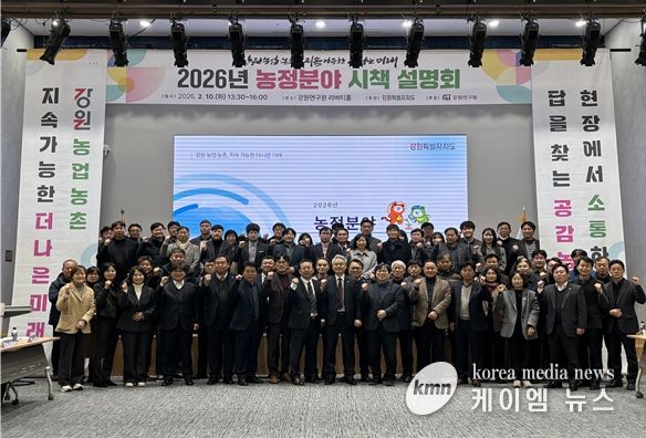 (케이엠뉴스) 강원특별자치도는 2월 10일 강원연구원에서 18개 시군 농정부서장 등 80여 명이 참석한 가운데 ‘2026년 농정분야 시책 설명회’를 개최했다.