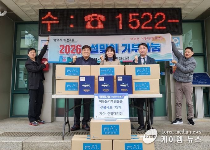 (케이엠뉴스) 기아 신평대리점은 10일 설 명절을 맞아 평택시 비전2동 행정복지센터에 지역 내 취약계층을 위한 명절 선물 세트 75박스를 기부했다.