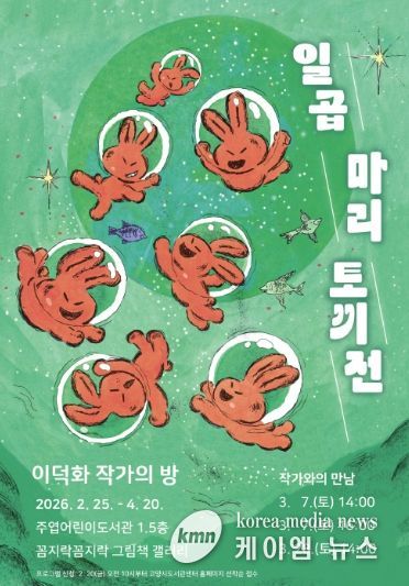 (케이엠뉴스) 고양특례시 주엽어린이도서관은 세계그림책 특성화 프로그램의 일환으로 오는 2월 25일부터 4월 20일까지 이덕화 작가의 방‘일곱 마리 토끼전’전시회를 개최한다.