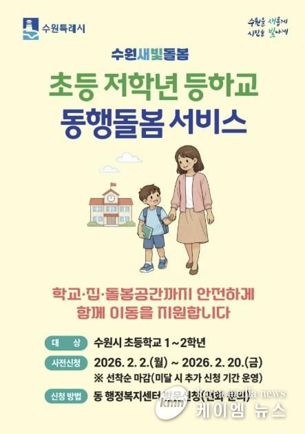 (케이엠뉴스) 수원특례시가 ‘초등 저학년 등하교 동행돌봄서비스’ 사전 신청 기간을 운영한다.