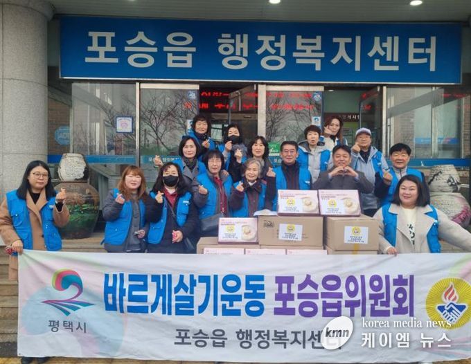 (케이엠뉴스) 유난히 매서운 병오년 신년 추위를 녹여줄 온정 가득한 나눔이 평택시 포승읍에 이어지고 있다.