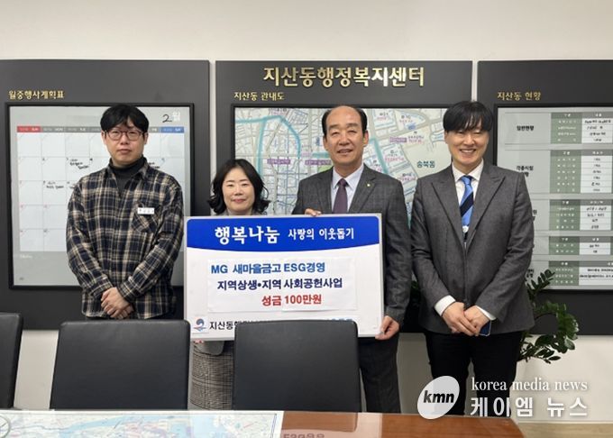 (케이엠뉴스) 송탄새마을금고는 11일 평택시 지산동 행정복지센터를 방문해 관내 취약계층을 지원하기 위한 성금 100만 원을 기부했다.