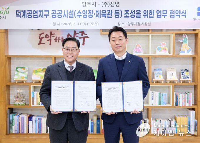 (케이엠뉴스) 양주시가 11일 덕계공업지구 개발사업자 신영피에프브이제3호와 특별계획구역에 대한 공공기여 사전협상을 완료했다. 이번 협상을 통해 양주시는 2029년 준공을 목표로 25m 6개 레인 규모의 실내수영장을 포함한 대규모 실내체육시설과 공공업무시설을 기부채납 받게 된다.