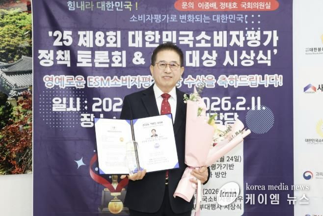 (케이엠뉴스) 지난 11일, 국회 도서관에서 열린 2026 제8회 ESM대한민국소비자평가우수대상 정책토론회 및 시상식에서 광주시의회 허경행 의장이 지방자치/행정 부문 대상을 수상했다.