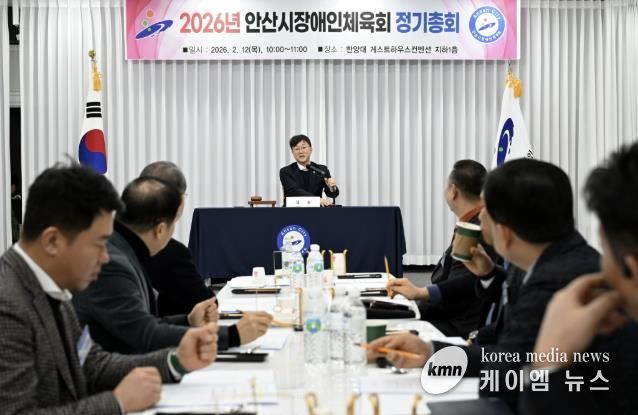 이민근 안산시장을 비롯해 임원, 가맹경기단체 대의원 등 80여 명이 참석한 이날 정기총회는 신임 임원 위촉패 수여식으로 시작됐다. 이어 ▲규정집 개정(안) ▲2025년도 수입 ․ 지출 결산 ▲2026년도 사업계획(안) 및 수입·지출 예산 승인 등 안산시장애인체육회의 안정적인 운영과 발전을 위한 주요 안건들이 차례로 상정되며 원안대로 의결됐다.