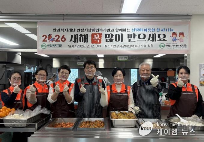 (케이엠뉴스) 사회복지법인 한길복지재단이 수탁 운영하는 안성시장애인복지관은 지난 2월 12일 오전 11:00~13:00, 복지관 2층 식당에서 ‘2026년 설맞이 따뜻한 한 끼(福) 나눔 행사’를 진행했다.