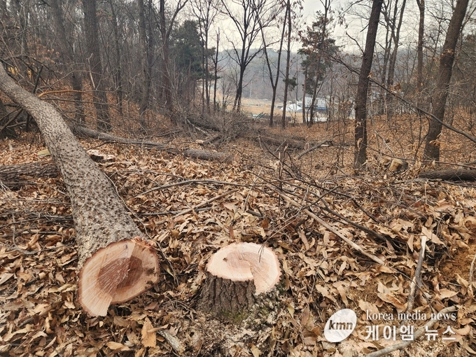 이 과정에서 30~50년생 수목수십 그루가 벌채되어 환경 훼손 논란도 확산되고 있다.