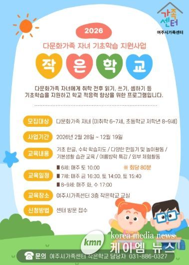 (케이엠뉴스) 여주시가족센터는 다문화가족 자녀 기초학습 지원사업 ‘작은학교’를 운영한다고 밝혔다.