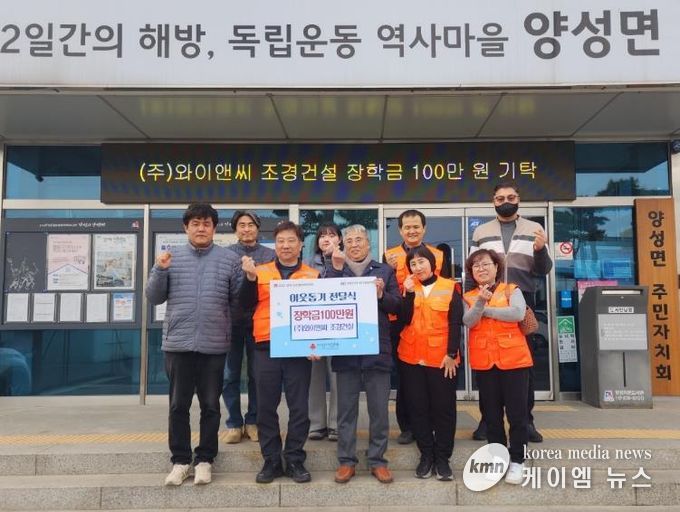 (케이엠뉴스) 안성시 양성면 소재 ㈜와이앤씨 조경건설은 지난 23일 양성면지역사회보장협의체에 청소년장학금 100만 원을 지정 기탁했다.