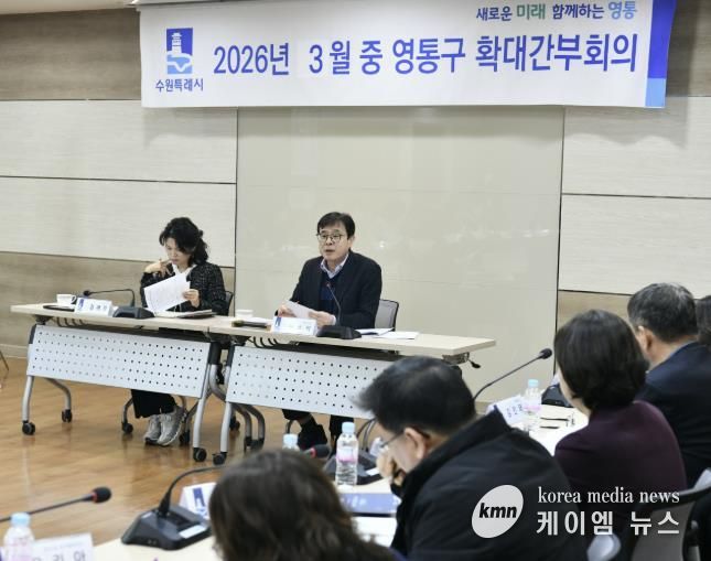 (케이엠뉴스) 수원특례시 영통구는 지난 24일, 구청 상황실에서 ‘2026년 3월 확대간부회의’를 개최하고, 구정 주요 현안을 집중 점검했다.