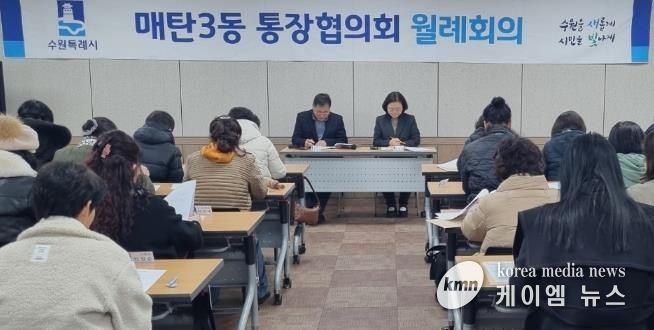 (케이엠뉴스) 수원시 영통구 매탄3동은 지난 24일 시정 및 동정 소식 공유를 위한 2월 통장협의회 월례회의를 개최했다.