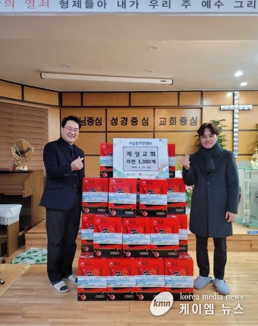 (케이엠뉴스) 의정부시 자금동주민센터는 2월 23일 계성교회가 관내 취약계층을 위해 라면 54상자(총 1천80개)를 기탁했다고 밝혔다.