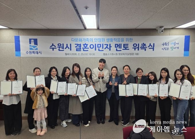 (케이엠뉴스) 수원특례시가 25일 시청 영상회의실에서 ‘2026년 결혼이민자 멘토 위촉식’을 열고 선배 이민자 멘토 15명을 위촉했다.