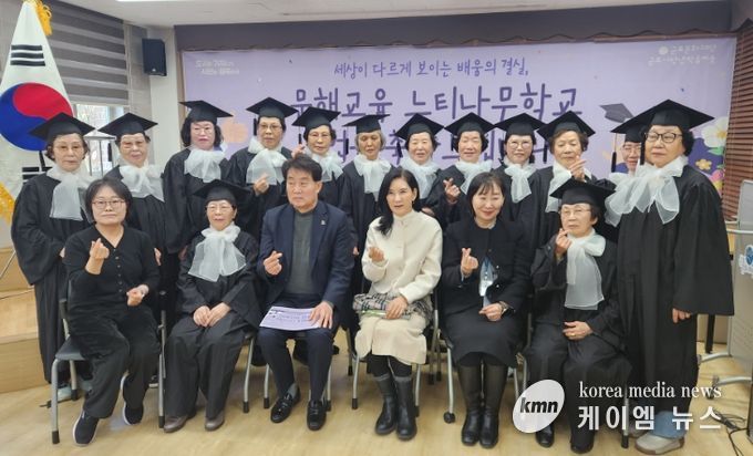 (케이엠뉴스) 군포문화재단 군포시평생학습마을의 문해교육 과정인 '느티나무학교'의 졸업식이 지난 25일 평생학습관 다목적실에서 진행됐다.