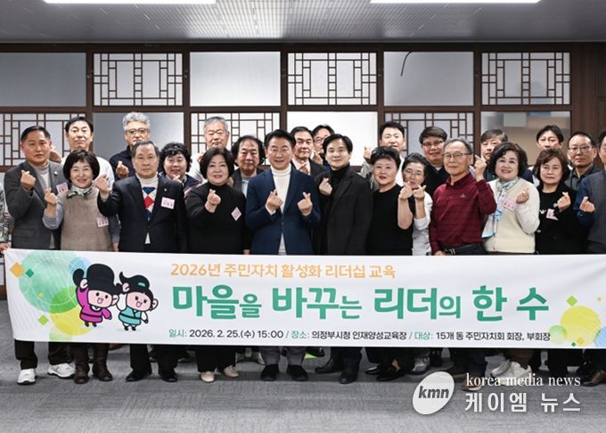 (케이엠뉴스) 의정부시는 2월 25일 시청 인재양성교육장에서 15개 동 주민자치회 회장과 부회장을 대상으로 ‘마을을 바꾸는 리더의 한 수’ 주민자치 활성화 리더십 교육을 진행했다.