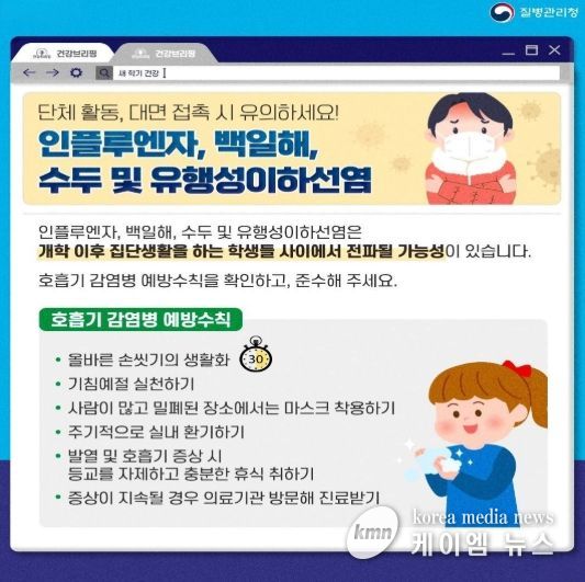 질병관리청에 따르면 개학 이후 교실, 급식실, 학원 등에서 학생 간 밀접 접촉이 증가하면서 호흡기 및 접촉성 감염병 전파 가능성이 커진다. 특히 수두와 유행성이하선염은 증상 발생 전부터 전염력이 있어, 초기 증상 인지와 등교 자제가 확산 예방에 중요하다. 백일해 역시 장기간 기침이 지속될 수 있어 조기 진료가 필요하다.