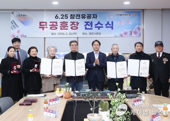 (케이엠뉴스) 고양특례시는 지난 26일 고양시청 열린시장실에서 ‘6·25참전유공자 무공훈장 전수식’을 개최했다고 밝혔다.