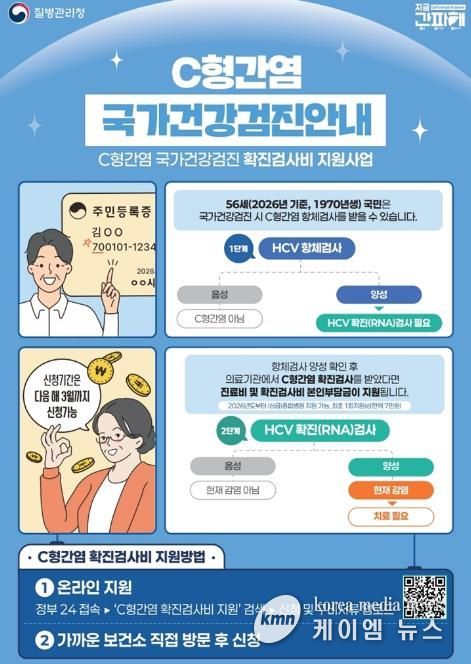 이번 사업은 56세 국가건강검진(2026년 기준 1970년생)에서 항체 양성 판정을 받은 대상자가 확진(RNA)검사를 받을 경우, 최초 1회에 한해 검사 당일 진찰료와 확진검사비(본인부담금)를 최대 7만 원까지 지원하는 사업이다.