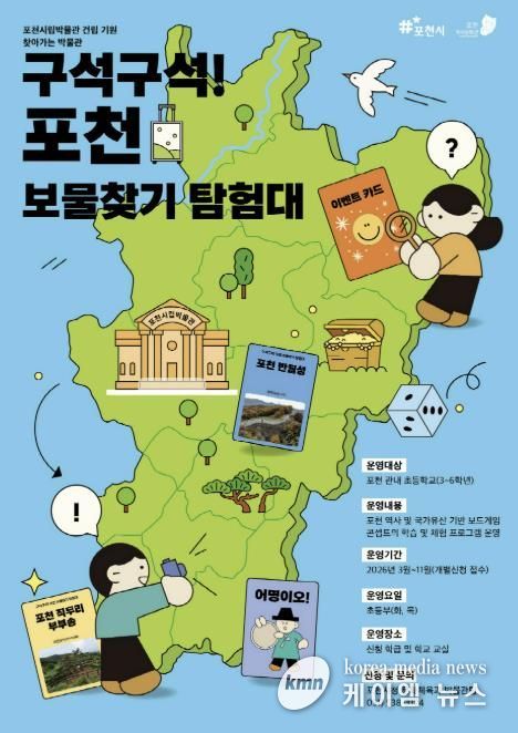 (케이엠뉴스) 포천시 포천역사문화관은 포천시립박물관 건립에 대한 시민 공감대를 높이고 지역 역사 교육을 활성화하기 위해 초등학생 대상 교육프로그램 ‘구석구석! 포천 보물찾기 탐험대’를 운영하고 참여 학교를 모집한다.