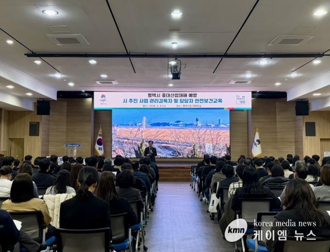 (케이엠뉴스) 평택시는 지난 4일 시청 대회의실에서 시 소속 사업장 및 도급사업의 안전관리 수준을 높이고 중대산업재해 예방을 위해 ‘중대산업재해 예방 역량 강화를 위한 안전‧보건 교육’을 실시했다.