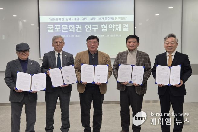 (케이엠뉴스) 부천문화원과 강서문화원, 계양문화원, 김포문화원, 부평문화원은 3월 4일 부천문화원에서 ‘굴포문화권’을 토대로 하는 연구교류 협약식을 체결했다. 이로써 ‘굴포’를 같은 문화권으로 하는 부천문화원·강서문화원·계양문화원·김포문화원·부평문화원은 학술대회와 콘텐츠 발굴 사업 등 다양한 지역학 자원을 발굴하고 활성화하기 위해 최초로 지역학 연구 모델을 구축하게 됐다. 특히, 이번 협약은 경기도(부천, 김포), 서울특별시(강서), 인천광역시(계양, 부평)를 잇는 ‘지역학’ 중심의 연구 교류를 마련한다는 점에서 주목된다.