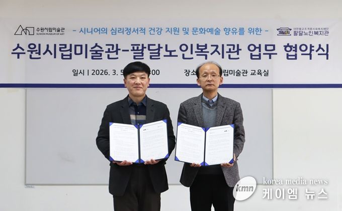 (케이엠뉴스) 경기도 수원시립미술관과 수원시 팔달노인복지관은 5일 관내 시니어의 문화예술 향유 활성화를 위한 업무협약을 체결했다.