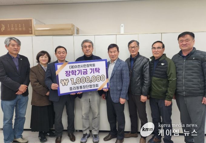 (케이엠뉴스) 중리동 통장단협의회는 지난 3월 4일 지역 인재 육성을 위해 이천시민장학재단에 장학금 100만 원을 기탁했다.