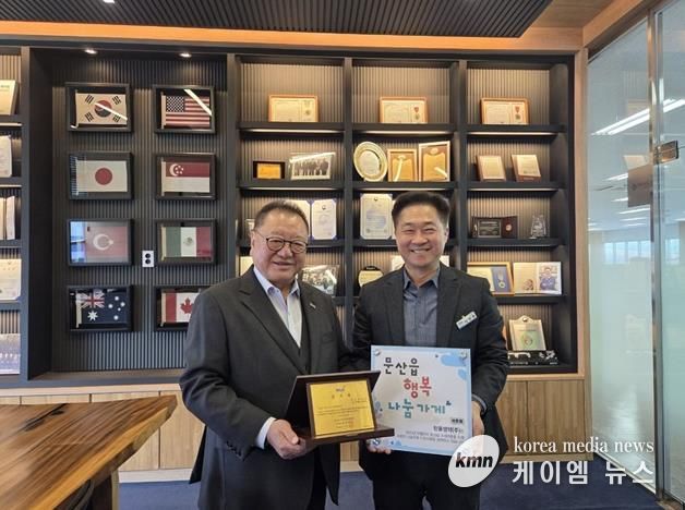 (케이엠뉴스) 파주시 문산읍은 5일, 지역사회 나눔문화 확산에 기여해 온 한울생약㈜을 ‘행복나눔가게’16호점으로 선정하고 현판 및 감사패 전달식을 가졌다.