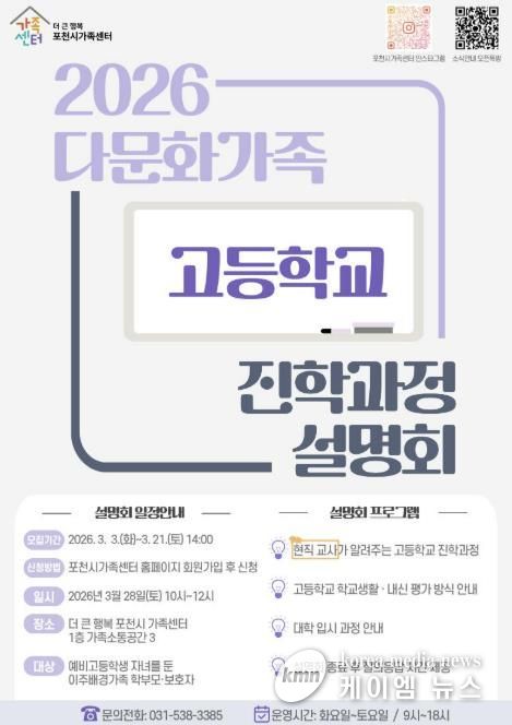 (케이엠뉴스) 포천시 직영 더 큰 행복 포천시가족센터가 오는 28일, '2026 다문화가족 고등학교 진학과정 설명회'를 개최한다.