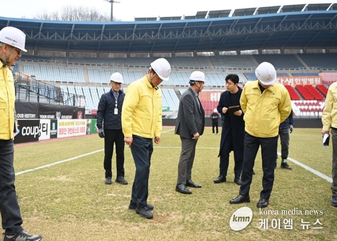 (케이엠뉴스) 부천시가 오는 7일 열리는 부천FC1995 사상 첫 K리그1 홈 개막전을 하루 앞두고 부천종합운동장 모든 구역에 대한 안전 점검에 나섰다. 승격팀 부천FC1995가 개막전부터 ‘디펜딩 챔피언’ 전북 현대를 역전승으로 꺾는 이변을 연출하며 축구 열기가 높아진 만큼, 시민들이 안전하게 경기를 즐기고 선수들은 최상의 기량을 발휘하는 환경을 마련하겠다는 취지다.