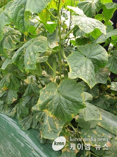 도 스마트농업본부에 따르면 최근 기온 상승으로 낮 동안 시설하우스 측창을 개방하는 농가가 늘었는데, 이때 스마트팜 내 갑작스럽게 찬바람이 유입되면 오이 등 박과류 작물이 스트레스로 인한 ‘급성 노균병’에 걸릴 수 있다.