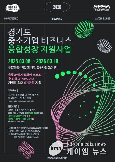 (케이엠뉴스) 경기도와 (재)경기도경제과학진흥원이 도내 중소기업의 혁신 성장과 새로운 비즈니스 모델 발굴을 돕는 ‘2026년 중소기업 비즈니스 융합성장 지원사업’의 참여기업을 모집한다.