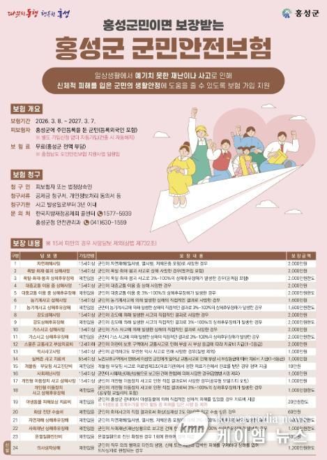 (케이엠뉴스) 홍성군이 군민의 일상 속 안전망 강화를 위해 운영하는 ‘군민안전보험’의 홍보에 나섰다.