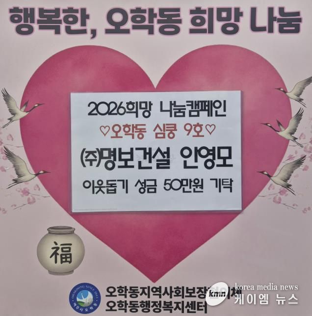 (케이엠뉴스) 여주시 상거동에 위치한 ㈜명보건설은 지난 5일 지역 내 어려운 이웃을 위한 성금 50만 원을 오학동행정복지센터에 기탁했다.