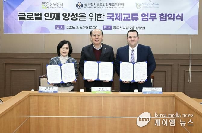 동두천시는 지난 6일 오전 10시 동두천시청 상황실에서 박형덕 동두천시장, 김한경 동두천시글로벌인재교육센터(㈜한원글로벌) 대표, 매튜 피셔(Matthew Fischer) 콘웰이건 가톨릭고 이사장 등 주요 관계자들이 참석한 가운데 ‘청소년 국제교류 활성화 및 글로벌 교육 협력체계 구축을 위한 업무협약(MOU)’을 체결했다고 밝혔다.