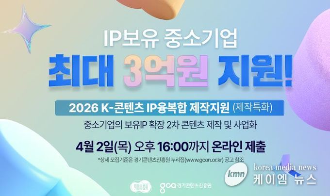 (케이엠뉴스) 경기도가 ‘2026 K-콘텐츠 IP(지식재산권) 융복합 제작 지원사업(제작 특화)’에 참여할 기업을 오는 4월 2일까지 모집한다.