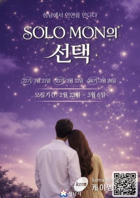 (케이엠뉴스) 성남시가 4년째 진행 중인 미혼 남녀 만남 행사 ‘솔로몬(SOLO MON)의 선택’ 인기가 여전한 것으로 나타났다.
