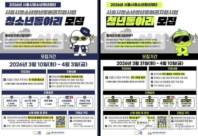 (케이엠뉴스) 시흥시와 시흥시청소년청년재단은 지역 청소년과 청년의 자율적인 동아리 활동을 지원하고 건강한 문화 형성을 위해 ‘2026년 시흥시 청소년ㆍ청년 동아리 지원사업’에 참여할 동아리 670개를 모집한다고 밝혔다.