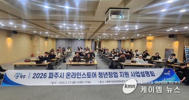 (케이엠뉴스) 파주시는 (재)경기테크노파크와 함께 지난 2월 27일 운정행복센터 다목적실에서 '2026 파주시 온라인 스토어 청년창업 지원 사업설명회’를 개최했다.