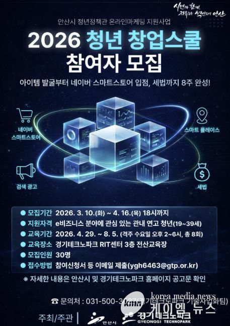 (케이엠뉴스) 안산시는 e비즈니스 분야 청년 창업자의 안정적인 시장 진입과 사업 운영을 지원하기 위해 ‘청년 창업스쿨’ 참여자를 모집한다고 10일 밝혔다.