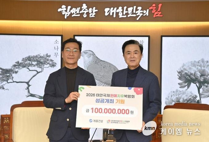 태안국제원예치유박람회조직위는 10일 충남도청 접견실에서 ‘2026 태안국제원예치유박람회’ 성공 개최를 위한 후원금 전달식을 갖고 한국서부발전㈜ 3억 원과 계룡건설산업㈜ 1억 원 등 총 4억 원을 후원 받았다고 밝혔다.
