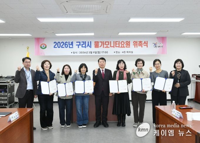 (케이엠뉴스) 구리시는 지난 9일 시청 4층 회의실에서 지역 물가 안정과 공정한 소비 환경 조성을 이끌어갈 ‘2026년 신규 물가 모니터 요원 위촉식’을 개최했다.