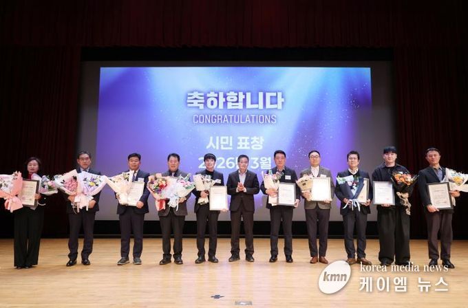 (케이엠뉴스) 부천시는 지난 10일 시 월례회의 ‘월간 부천 플러스’에서 2026년 부천시 모범납세자 20명(법인 16개소, 개인 4명)에게 인증서를 수여했다.