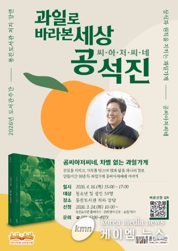 (케이엠뉴스) 김포시 통진도서관은 제62회 도서관주간을 맞아 오는 4월 16일 오후 3시 '공씨아저씨네, 차별 없는 과일가게'의 저자 공석진 대표를 초청해 ‘과일로 바라본 세상’ 강연을 운영한다.