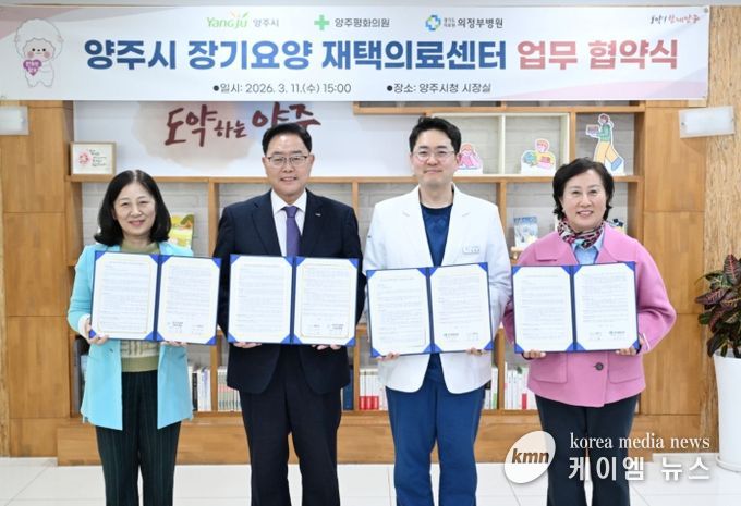 (케이엠뉴스) 양주시는 11일 시장실에서 양주평화의원, 경기도의료원 의정부병원과 ‘장기요양 재택의료센터 시범사업 추진을 위한 업무협약(MOU)’을 체결했다.